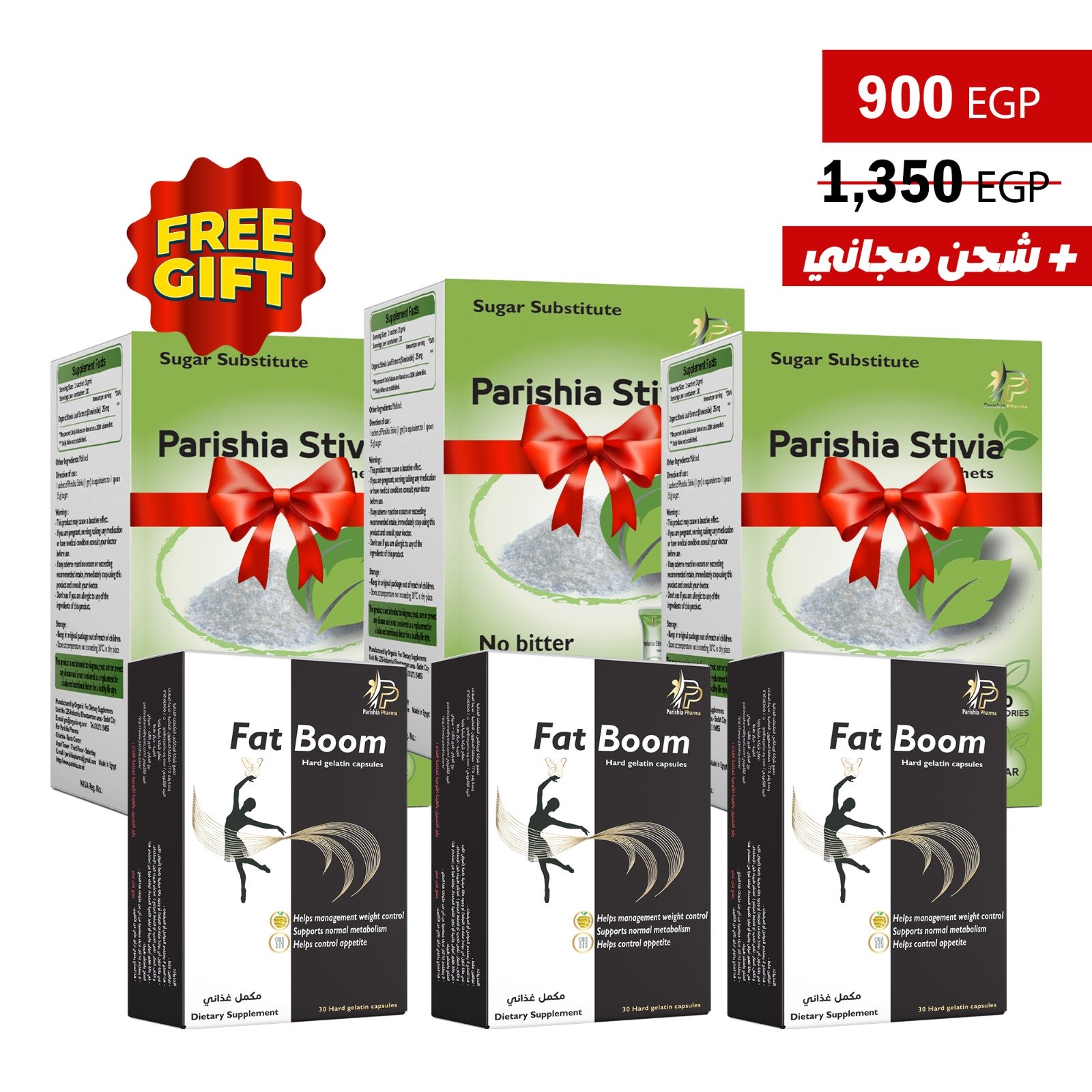لا تتوقفي في منتصف الطريق.. النتائج الحقيقية تبدأ الآن! لأن العلبة الواحدة تكفي 15 يوماً فقط، وفرنا لكِ كورس الـ 45 يوماً المكثف (3 عبوات فات بوم) لضمان حرق الدهون باستمرار وبدون انقطاع، مع هدية مجانية: سكر باريشيا ستيفيا العضوي لقطع السعرات تماماً.